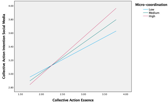 Interaction effects of viewing mobile phones as a tool for collective action and micro-coordination on intentions to participate in collective actions using social media.