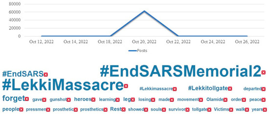 Study 2 adopted a qualitative content analysis technique and specifically utilised social media network analytics. Using Netlytic (https://netlytic.org/, access on 13 March 2023), the researcher analyzed tweets and retweets from the hashtag “#EndSARSMemorial2” to determine first the nature of conversations and crowds that used the hashtag, the number of tweets and retweets, and the themes that emerged from the tweets on how digital activists in Nigeria showed their solidarity to their colleagues that died during the 2020 #EndSARS protests as a way of sustaining their protest movement.