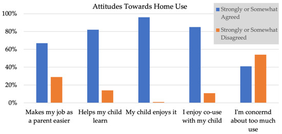 In terms of parent attitudes (RQ3), overall, the parents in our sample reported feeling very positive about their children’s technology use. Despite reporting some concern that their children might be spending too much time with technology, overwhelmingly, parents expressed support for children’s use of technology both at home and at school, especially important to the issue of technology integration in schools. Parents agreed that educational tablets can be effective tools for early learning in classrooms. The positive attitudes of parents in our sample are in line with other recent national studies, which showed that parents of young children today, who are generally Millennials that grew up using technology from a young age, held very positive views of their children’s technology use (Rideout and Robb 2020).