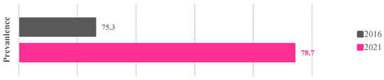 Total prevalence of violence against women over 15 years old in the State of Mexico (2016–2021). Note: in percentages.