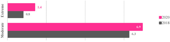 Figure 1 reveals that there has been a gradual increase in the prevalence of violence against women by almost 4%, according to data from INEGI (n.d.). Alternatively, Figure 2 shows that the total population in situations of extreme poverty almost doubled, moderate poverty increased by over half a million (CONEVAL 2021), when the social development program was launched. Both elements, violence against women and poverty, are key factors in the targeted demographic group of the program.