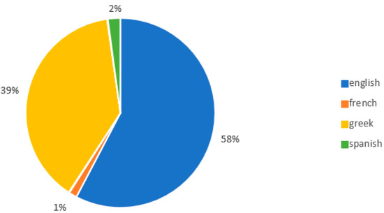 In particular, we see that almost 6 out of 10 messages are in English, with a rate of 57% (Figure 7). This is followed by Greek tweets, with a 38% share. These include Greeklish (or Latin Greek or Fragol-Levantine), i.e., Greek language messages written in the Latin alphabet, as they are not a separate language and are addressed to those who know Greek.