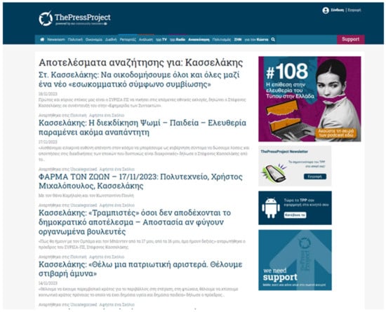 The period of analysis was limited to articles published in September 2023, when news about Stefanos Kasselakis and his candidacy for the presidency in the party’s upcoming internal elections that would be held on 17 September 2023, first broke out.