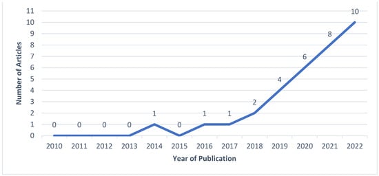 Frequency of articles by year (2010–2022).