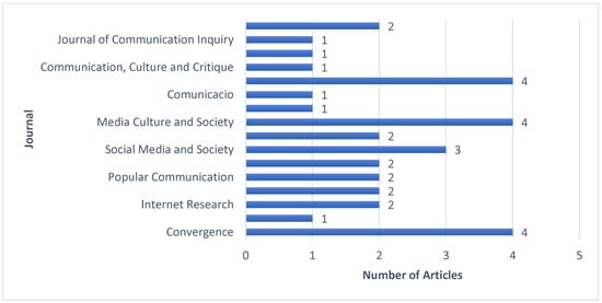 Descriptive statistical treatment of the sampled literature was used to identify the main scientific trends, in particular, the frequency of publication in the observed time interval (2010–2022), the most significant scientific journals, the patterns of methodological approaches, and the digital platforms that were most analyzed. Significantly, over the last decade, OTT recommender systems have received increasing research attention in the field of communication; this trend is particularly accentuated from 2019 onwards (Figure 2).