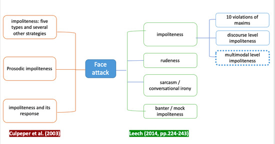 9. Culpeper, Jonathan, Derek Bousfield, and Anne Wichmann. 2003. Impoliteness revisited: With special reference to dynamic and prosodic aspects. Journal of Pragmatics 35: 1545–79. [Google Scholar] [CrossRef]