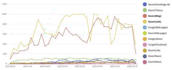 The data collection for this study’s analysis utilized Textom and BigKinds to gather unstructured data from 13 June 2021 to 12 June 2024, using the keywords ‘VTuber’ and ‘Virtual Youtuber’, as shown in Table 2.