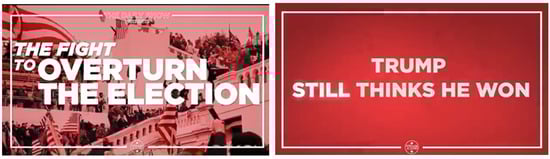 - The Daily Show. (2021, May 26). The fight to overturn the 2020 election: Somehow still going [Video]. YouTube. Available online: https://www.youtube.com/watch?v=Mthxwgnvp-E (accessed on 19 April 2024).