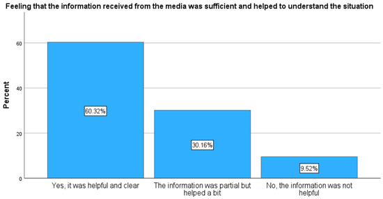 Furthermore, when asked whether they felt that the information they received from the media was sufficient and helped them to better understand the situation (i.e., feeling informed), almost two thirds of the respondents responded “yes” (60.3%), followed by 30.2% who replied, “helped a bit” and 9.5% who found the information insufficient (see Figure 2).