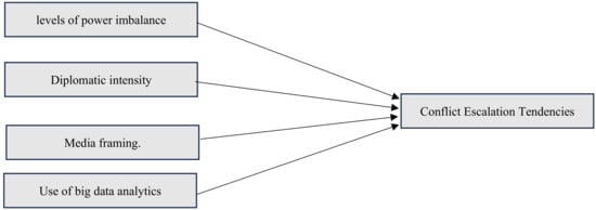 The remainder of this paper is structured as follows: Power imbalances, alliance cohesion, diplomacy, media framing, and big data analytics are all discussed in Section 2, along with the theoretical underpinnings and conceptual framework of conflict escalation. The method is explained in Section 3, along with the survey design, data collection, and usage of SEM via SMART-PLS. The empirical analysis of the results is presented in Section 4, which is followed by a discussion of the policy implications. Section 5 concludes by summarizing key findings and arguing potential directions of future research to understand and control tendencies to escalate conflict.