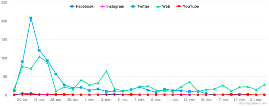 However, we cannot be completely sure that X was the dominant social media, as there are very few items on Facebook, Instagram, and YouTube, suggesting that our software is not capturing what happens on these social media well.