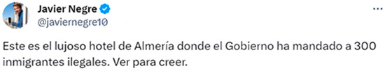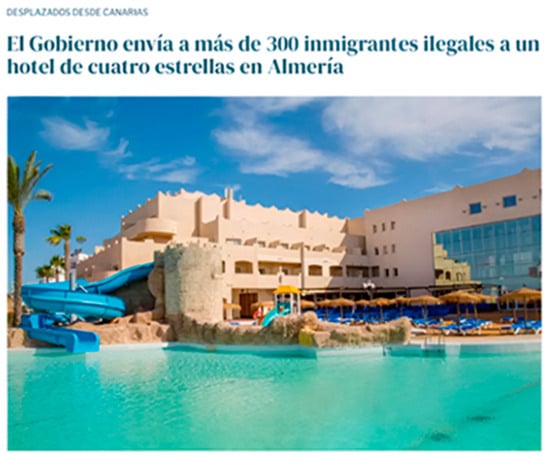 Publication by a journalist about the comparative grievance [This is the luxury hotel in Almería where the government sent 300 illegal immigrants. Seeing is believing].