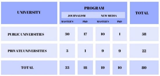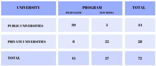 The overall distribution reveals an important structural distinction. While journalism education is concentrated in public universities, private universities are at the forefront of developing specialized programs in new media and digital communication. The extent to which students of both journalism and new media departments are prepared for the evolving digital environment and how they integrate their curricula to adapt to rapid technological changes is directly related to the current and dynamic structure of the educational programs of these departments.