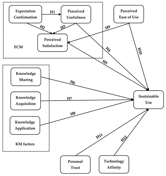 - Al-Sharafi, M. A., Al-Emran, M., Iranmanesh, M., Al-Qaysi, N., Iahad, N. A., & Arpaci, I. (2023). Understanding the impact of knowledge management factors on the sustainable use of AI-based chatbots for educational purposes using a hybrid SEM-ANN approach. Interactive Learning Environments, 31(10), 7491–7510. [Google Scholar] [CrossRef]