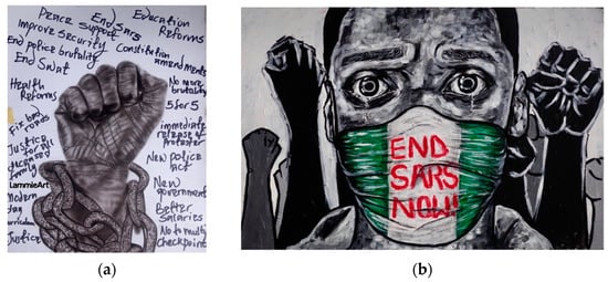 - Sanusi, A. (n.d.). #ENDSARS protest live art. Ayo Sanusi. Available online: https://ayosanusi.com/endsars-protest-live-art (accessed on 21 September 2024).