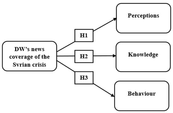 The ability of news media to enhance public understanding of crises has been extensively studied. Widyastuti (2021) identifies media as a critical tool for disaster literacy, delivering educational content that promotes preparedness and informed responses. The relationship between knowledge and news exposure has been examined. Research has found that people who felt a higher concern about the impact of the crisis (e.g., COVID-19, conflict) and had a greater trust in news media exhibited increased news consumption (Bailey et al., 2007; Van Aelst et al., 2021). Hasibuan et al. (2022) extend this argument, showing how targeted reporting can improve awareness of disaster risks and foster community empathy. Similarly, Selvarajah and Fiorito (2023) examine the relationship between international law and media framing during the Russia–Ukraine conflict, demonstrating how news coverage can elevate public awareness of humanitarian issues and legal accountability. This means that knowledge facilitation through trusted news sources is essential during a crisis. However, the effectiveness of media in promoting knowledge depends on trust and credibility (A. Chen & Zhang, 2022; Lindgren, 2013; Reese, 2007). In fact, Czymara and Klingeren (2022) emphasise the importance of understanding what information people are exposed to through different media outlets. For example, they note that the patterns of news coverage can significantly affect public discourse through diverse frames and narratives in the news and can enhance or limit the public’s knowledge about complex issues. As de Hoog and Verboon (2020) argue, audiences are more likely to retain and apply information when it comes from reliable sources. This highlights the importance of media outlets such as DW, which are perceived as credible providers of in-depth, unbiased reporting. Thus, the relationship between knowledge and news exposure acquisition is critical in navigating complex situations, especially in times of uncertainty like the Syrian crisis. Therefore, we hypothesised that (H2) DW’s coverage of the Syrian crisis positively affected immigrants’ knowledge.