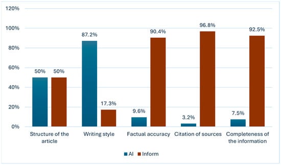 These findings directly address the research questions posed in the study: RQ1 regarding content differences was explored through detailed comparative analysis, while RQ2 on audience perception was addressed via the survey results, revealing a consistent preference for journalist-written articles in terms of accuracy and completeness.