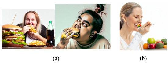 (a) Examples of DALL-E Nature of unhealthy food. (b) Example of DALL-E Nature of healthy food.
