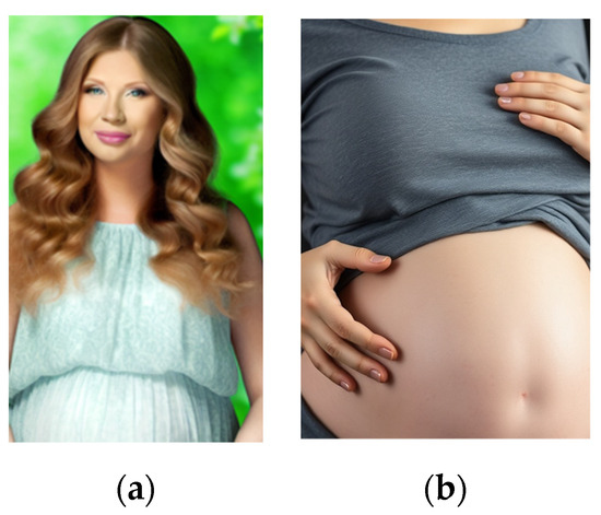 (a) Example of DALL-E Nature of a pregnant woman. (b) Examples of Flux 1 of a pregnant woman.