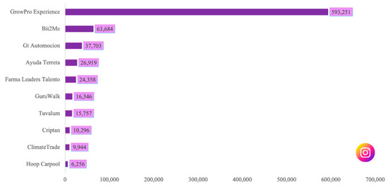 As shown in Figure 1, on Instagram, “GrowPro” tops the list with close to 600,000 followers, consolidating its position as the startup with the largest reach on this platform. Its focus on international experiences suggests that its community was previously established before the crisis. “Bit2Me” came in second with 63,684 followers.