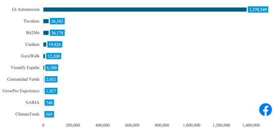 On Facebook (Figure 3), the picture was different to that observed on Instagram and TikTok. “Gt Automoción” led with 1,370,569 followers, establishing itself as the most influential account on this network.