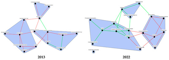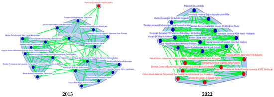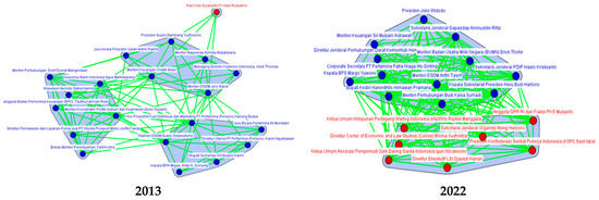 Actor network in the 2013 and 2022 fuel price increase in Tempo.co. Source: results processed using Visone, 2024.