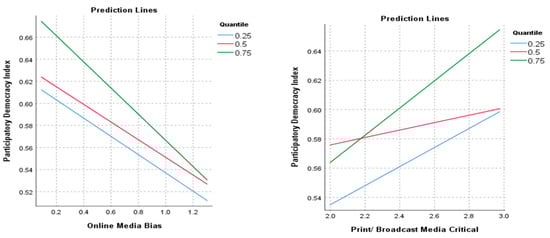 3.3. Online Media Bias, Social Media Usage, and Participatory Democracy: A Quantile Regression Model