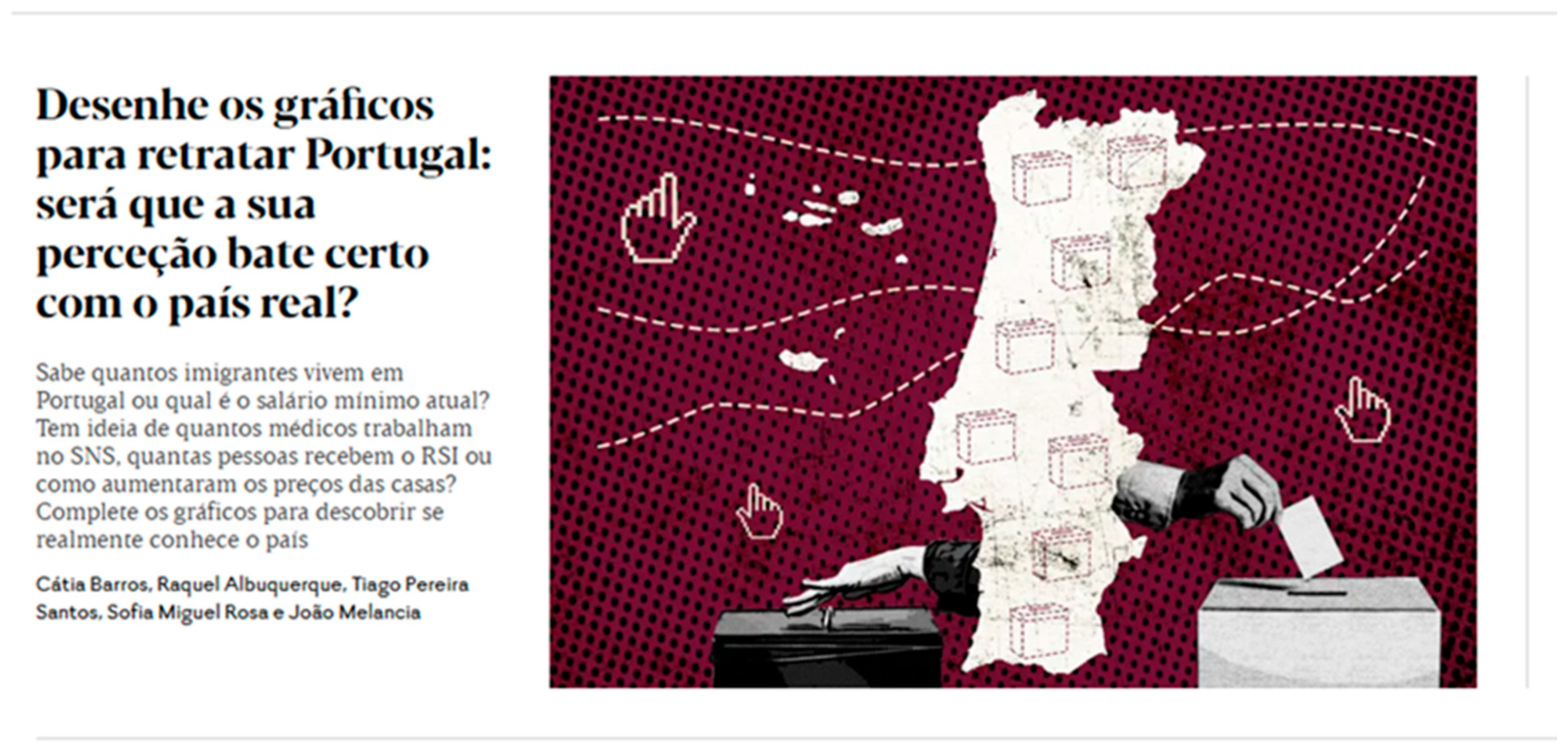 Mensagem de Lisboa’s community formats exemplify different ways of realizing aesthetic literacy applied to digital journalism. In the first case, interactivity transforms data visualization into an exploratory and cognitive practice, aligned with