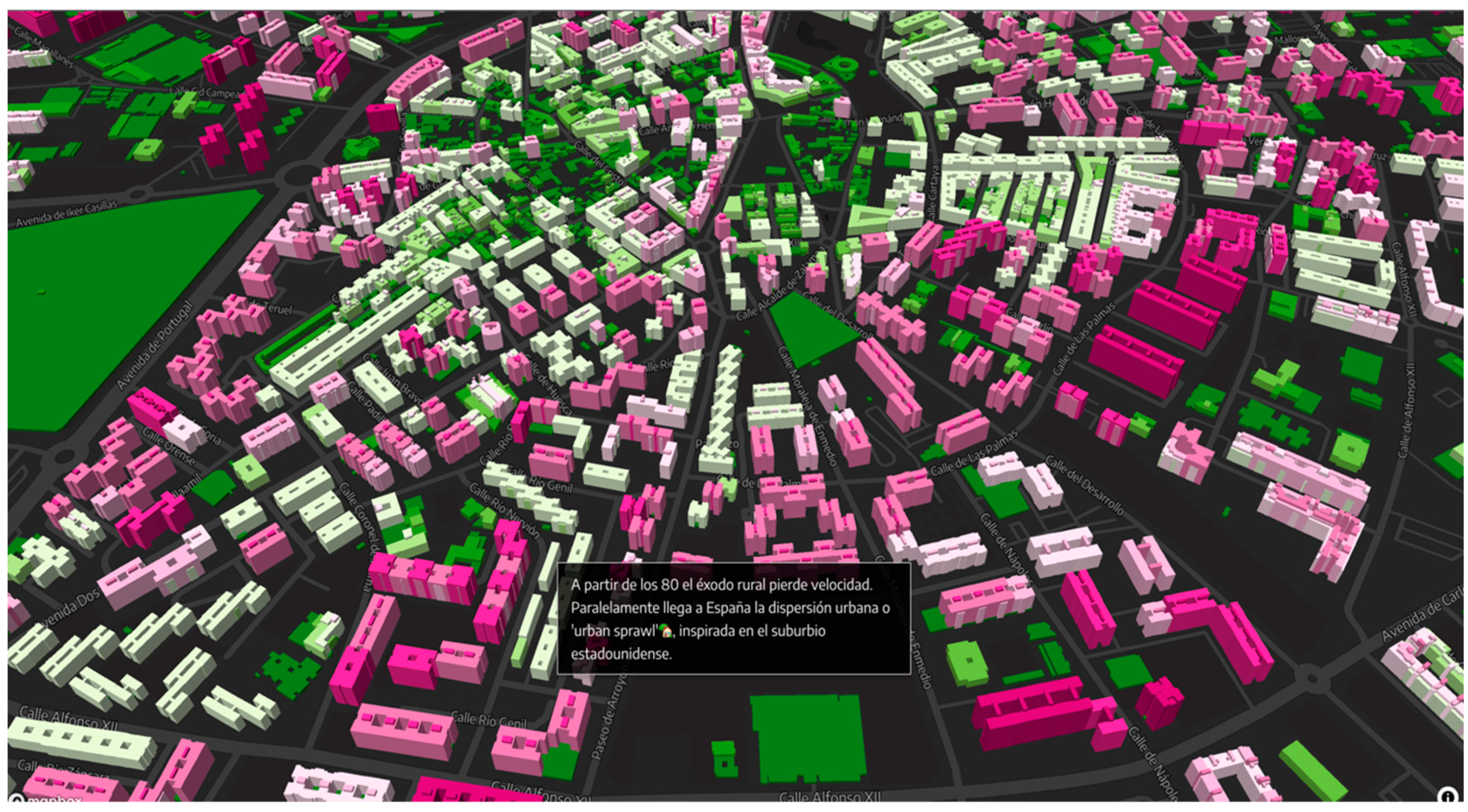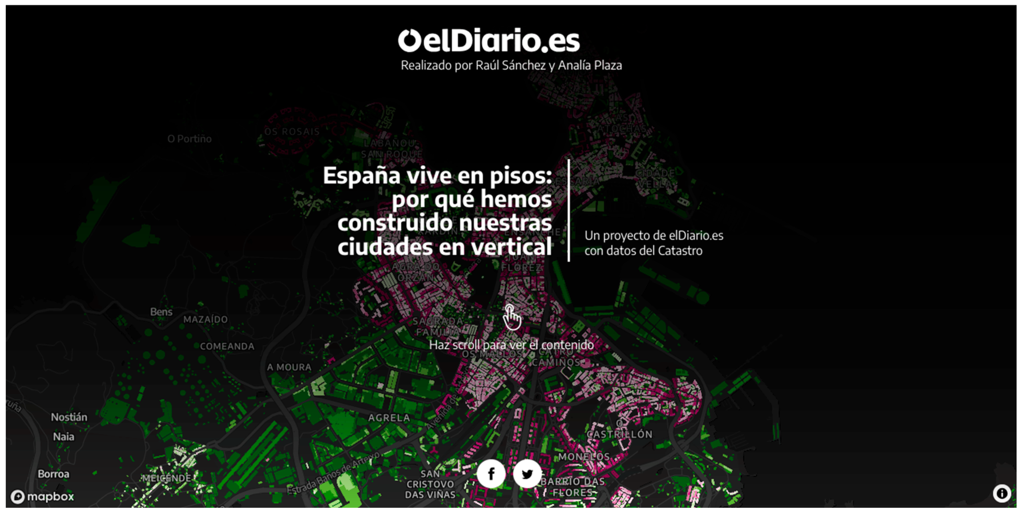 F.1. Type of hierarchy | Text and image animation in this order through different maps of Spanish cities | Vertical displacement (Parallax technique—Scrollytelling) | Vertical displacement (Parallax technique—Scrollytelling) | Vertical displacement (Parallax technique—Scrollytelling) |