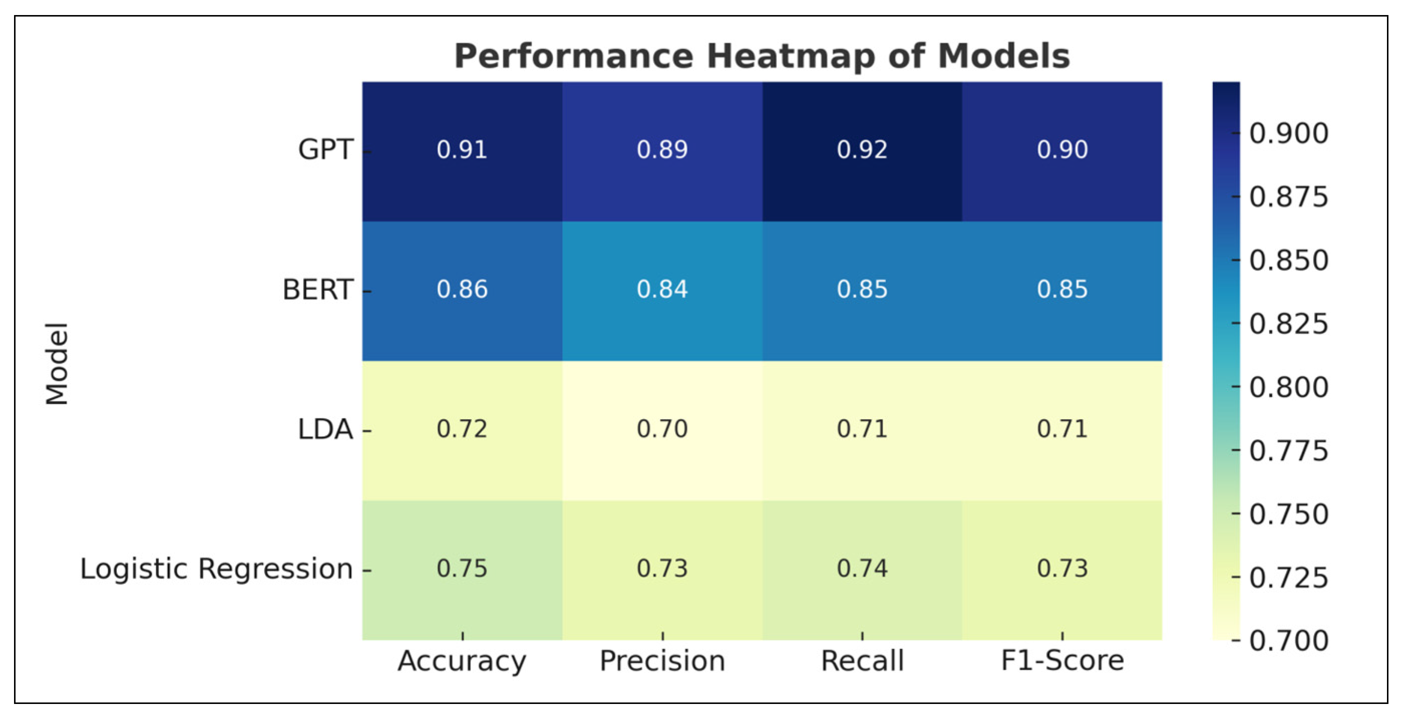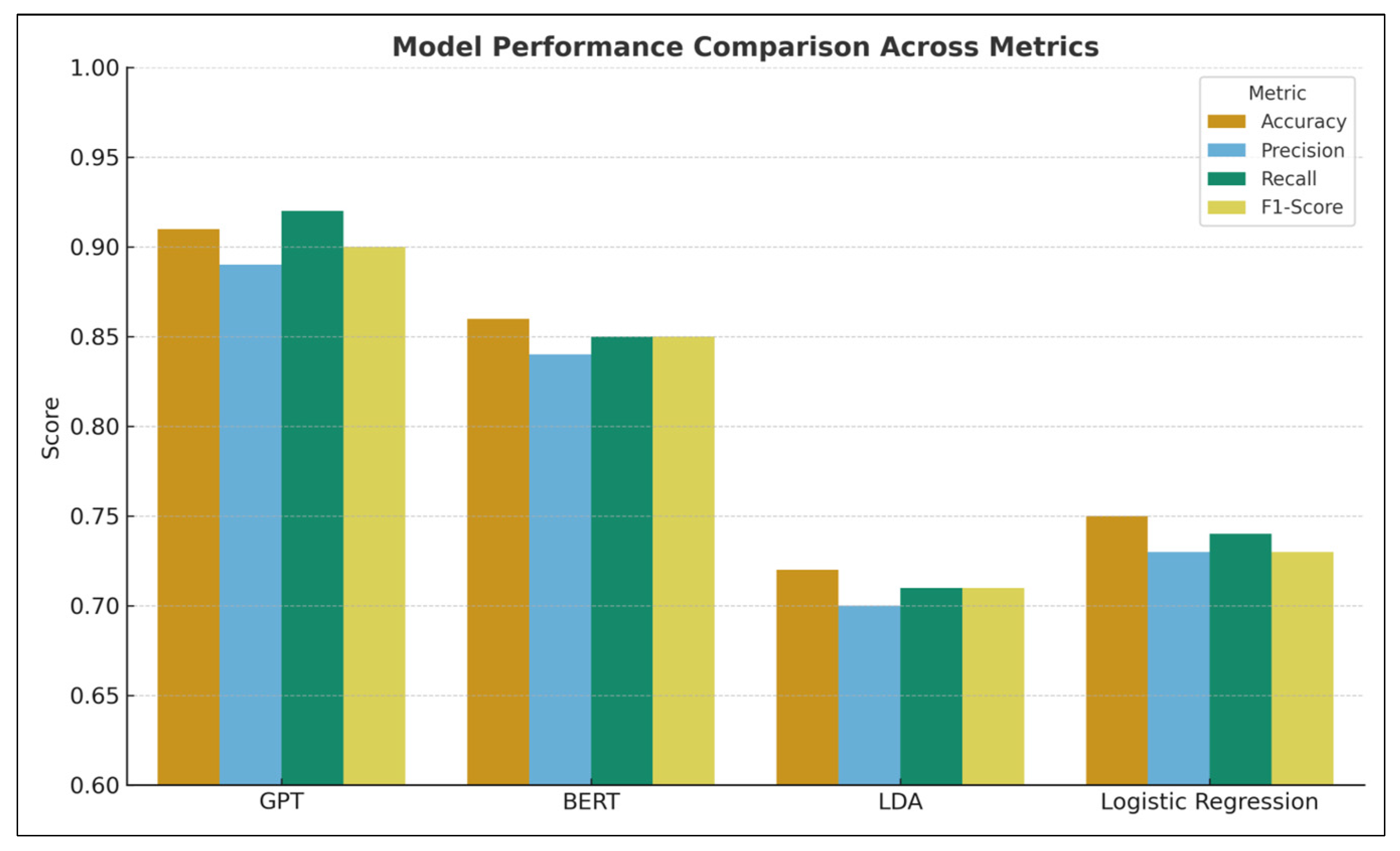 | LDA Topic Modeling | 0.61 | 0.65 | N/A | 0.47 | Useful for broad themes but limited semantic depth. |