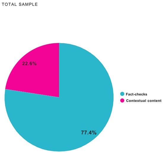 Type of content published in total sample: fact-checks vs. contextual content. Own compilation.