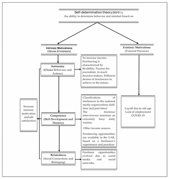 In contrast, many efforts have been made to improve freelancers’ working conditions (General, 2022; Langit & Aloria, 2022). The Russian government has recently acknowledged the presence of freelancers by including the word ‘self-employed’ in the legal system (Oleshko & Mukhina, 2022). Freelancing has no negative personal, professional, or financial effects on employees in Montenegro. In September 2020, the state took the first steps toward freelancing regulation by passing legislation on research and innovation, which recognized freelancers working in innovation for both domestic and international enterprises. Additionally, income from self-employment is not taxed (Svetlana, 2022). In Europe, freelancers have effective unions that advocate for their rights and working conditions (Oleshko & Mukhina, 2022). Denmark’s Union of Journalists stands out in Europe for its enormous membership, which exceeds 18,000 members. The union has successfully brokered a collective agreement for freelancers, ensuring parity in rights and protecting them from financial instability. This alliance guarantees equitable labor conditions within the media industry (Tarlach, 2020). Noura Al Kaabi, the former Minister of Culture and Knowledge Development in the United Arab Emirates, has suggested that government assistance for freelancers could be beneficial (Grinstead, 2021). This interprets the relatedness element in accordance with self-determination theory (SDT). It is concerned with feeling socially linked and refers to belonging to organizations larger than oneself, which increases intrinsic motivation (Deci & Ryan, 2000).