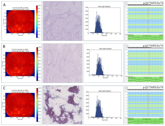 The main limitations of this study lie in the absence of control samples to check the reproducibility of NGS experiments and the absence of blood sample-derived DNA to confirm the germinal origin of the detected alteration. However, further studies by our group are ongoing to evaluate the role of our NGS approach for the identification of BRCA1/2 gene alterations in diagnostic routine practice. However, we speculate that the detected alteration has a germline origin due to identification in either malignant (allelic fraction of about 100%) or benign (allelic fraction of about 50%) lesions.