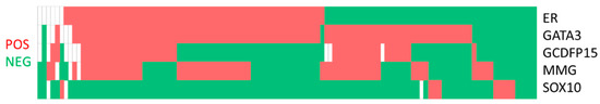 Comparison of co-expression pattern of estrogen receptor (ER), GATA3, gross cystic disease fluid protein-15 (GCDFP15), mammaglobin (MMG) and SOX10.