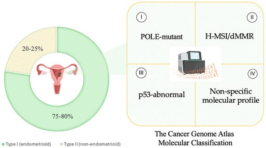 - Llobet, D.; Pallares, J.; Yeramian, A.; Santacana, M.; Eritja, N.; Velasco, A.; Dolcet, X.; Matias-Guiu, X. Molecular pathology of endometrial carcinoma: Practical aspects from the diagnostic and therapeutic viewpoints. J. Clin. Pathol. 2008, 62, 777–785. [Google Scholar] [CrossRef]