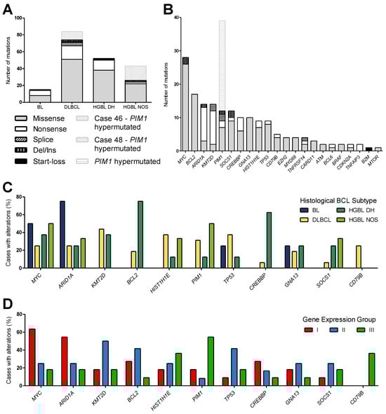 - Künstner, A.; Witte, H.M.; Riedl, J.; Bernard, V.; Stölting, S.; Merz, H.; Olschewski, V.; Peter, W.; Ketzer, J.; Busch, Y.; et al. Mutational Landscape of High-Grade B-Cell Lymphoma with MYC-, BCL2 and/or BCL6 Rearrangements Characterized by Whole-Exome Sequencing. Haematologica 2022, 107, 1850–1863. [Google Scholar] [CrossRef]