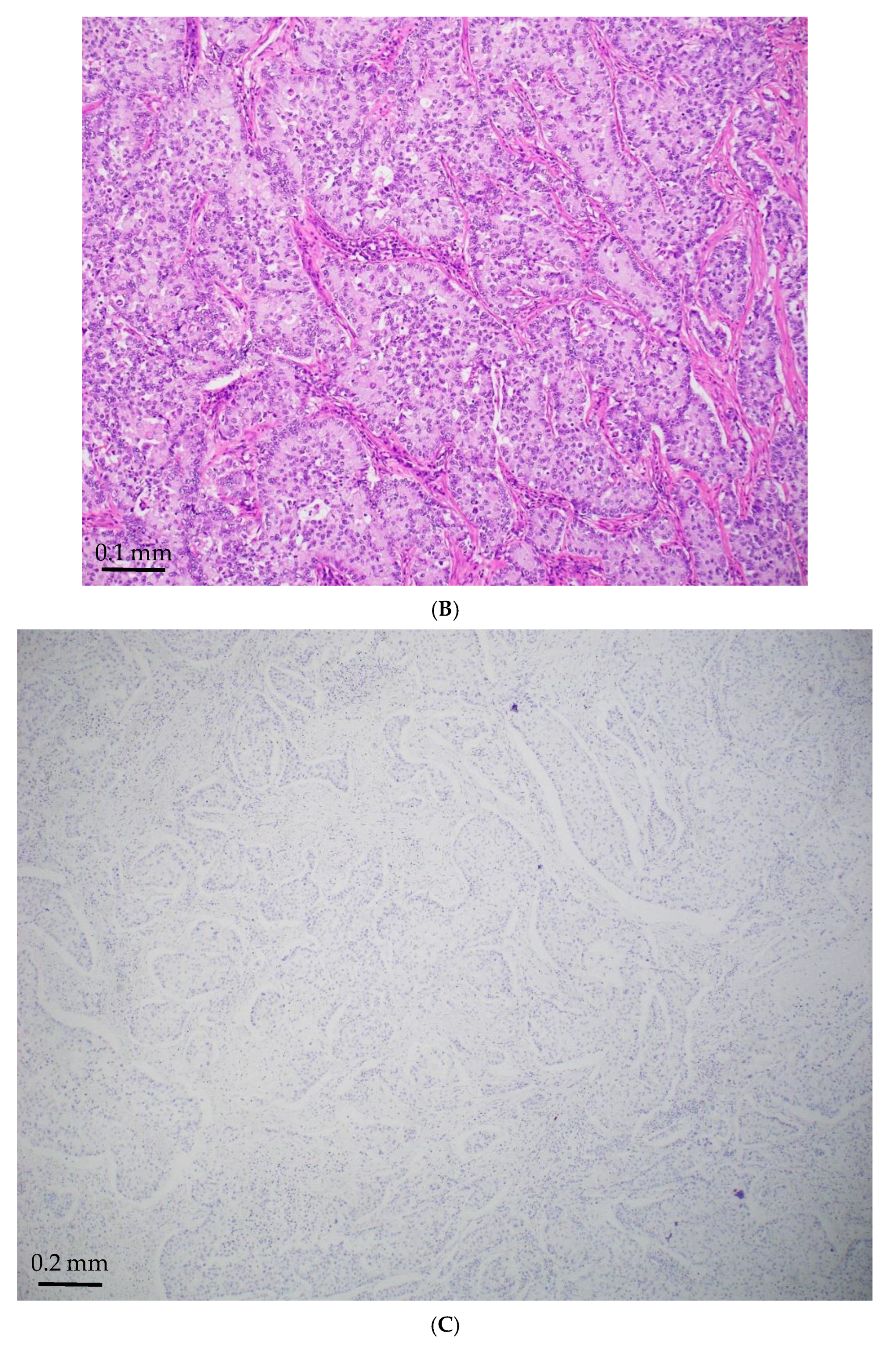13. Matoso, A.; Singh, K.; Jacob, R.; Greaves, W.O.; Tavares, R.; Noble, L.; Resnick, M.B.; DeLellis, R.A.; Wang, L.J. Comparison of thyroid transcription factor-1 expression by 2 monoclonal antibodies in pulmonary and nonpulmonary primary tumors. Appl. Immunohistochem. Mol. Morphol. 2010, 18, 142–149. [Google Scholar] [CrossRef] [PubMed]