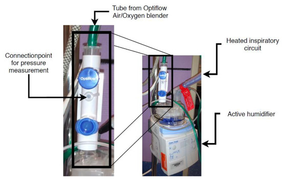 - Nishimura, M. High-Flow Nasal Cannula Oxygen Therapy Devices. Respir. Care 2019, 64, 735–742. [Google Scholar] [CrossRef] [PubMed]