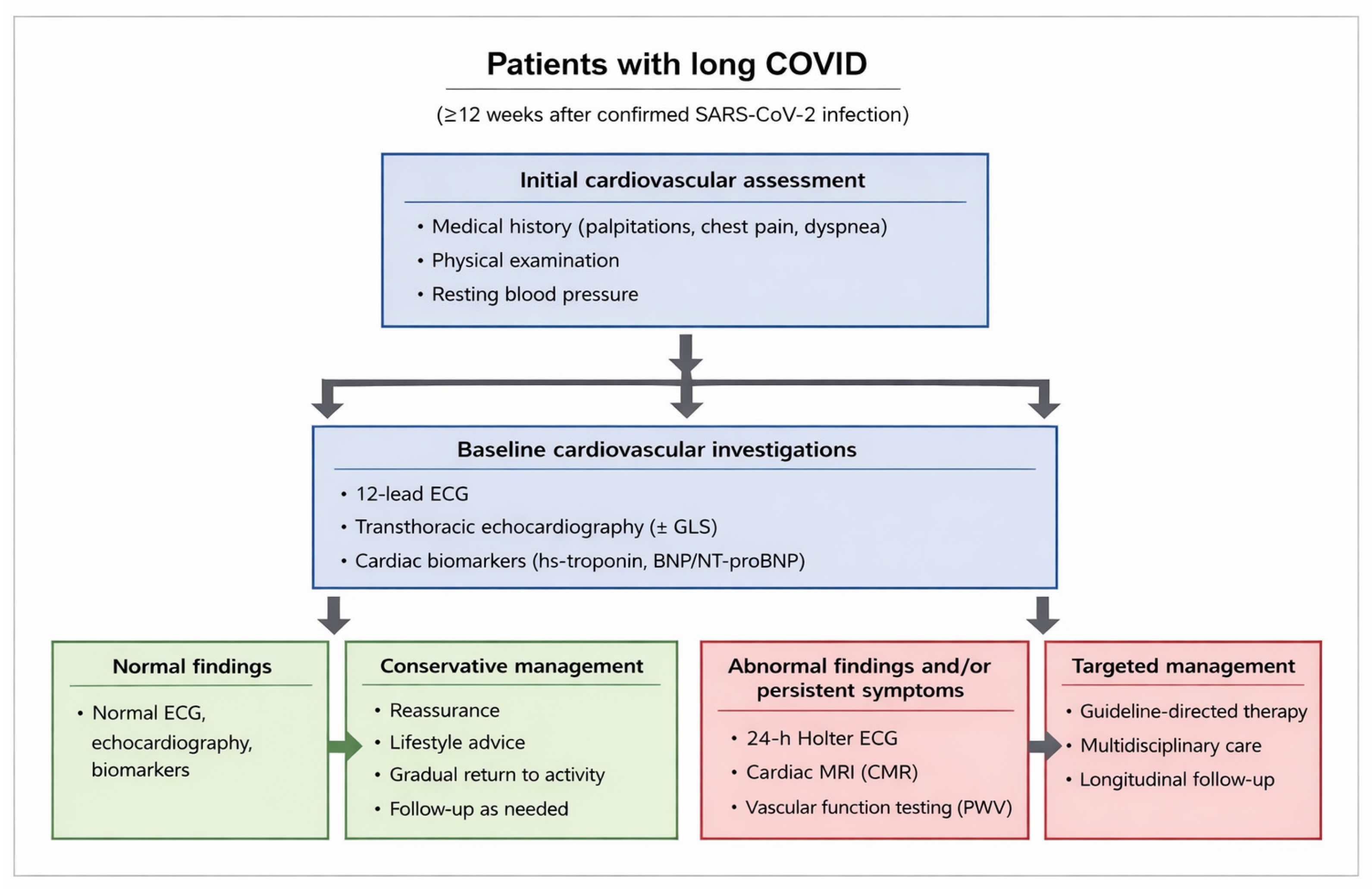 - At least one cardiovascular outcome, including objectively measured parameters (e.g., LVEF, GLS, ECG, PWV) or clinically reported cardiovascular symptoms relevant to long COVID (e.g., palpitations, chest pain, exercise intolerance).