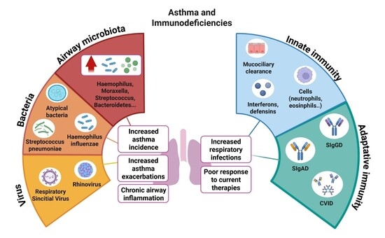 - Christou, E.A.A.; Giardino, G.; Stefanaki, E.; Ladomenou, F. Asthma: An Undermined State of Immunodeficiency. Int. Rev. Immunol. 2019, 38, 70–78. [Google Scholar] [CrossRef] [PubMed]