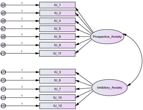 Confirmatory factor analysis of the Intolerance of Uncertainty Scale (IUS-12), two-factor structure model.