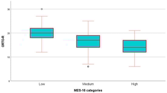 3.2. Correlations between MES-16, DASS-21, EDE-QS, and ORTO-R
