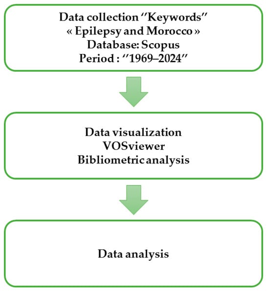 The bibliometric analysis was performed using the available articles in the Scopus database during the period between 1969 and 2024, following four steps as follows: the conceptualization of the study, data collection, data analysis and interpretation. To this end, the keywords “epilepsy” and “Morocco” were used. The Scopus database covers the most comprehensive catalog of publications, including books, conferences, and articles [18]. It also supports various software programs for retrieving bibliometric data, including authors, titles, dates of publications, countries, and institutions [19].