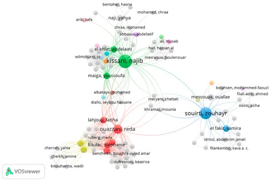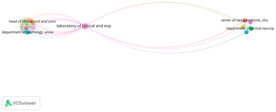 In Morocco, we found 22 institutions contributing to epilepsy, which were classified into two clusters (Cluster 1 and Cluster 2). The first item comprises 16 items, including the Department of Neurology, University Teaching, Hospital Mohammed VI, Marrakesh, Morocco, and the second cluster includes 6 items, such as the Center of Sleep Medicine, CHU Hassan II, Fez, Morocco; the Department of Clinical Neurophysiology, Specialty Hospital Ono CHU Ibn Sina Rabat, Morocco; the Department of Neurology, CHU Hassan II, Fez, Morocco; the Department of Neurology, Mohammed VI Oujda University Hospital Morocco; the Department of Neurology, Mohammed VI University Hospital, Marrakesh, Morocco; and the Laboratory of Clinical and Experimental Neuroscience, the Faculty of Medicine, Cadi Ayyad University, Marrakesh, Morocco (Figure 8).