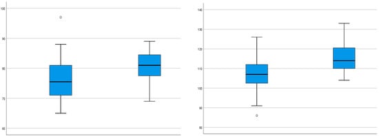 Cohen’s d quantifies the size of the difference between two groups by dividing the mean difference by the pooled standard deviation. This standardized measure is essential for understanding effect sizes, particularly when comparing pre- and post-trial conditions or assessing different treatment groups in clinical trials. It provides a clearer interpretation of the practical significance of research results [44]. In Table 3, the effect size of Cohen’s d was calculated between the groups, and effects were found above the medium force (d > 0.5 < 0.8) and at the high force (d > 0.8).