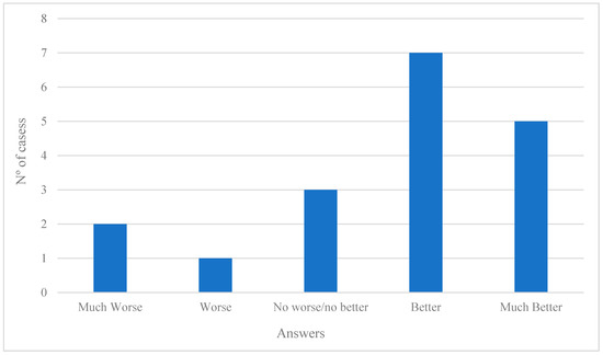 Figure 1, where we can analyze the distribution of answers to the question “Since you chose not to attend the program, how have you been feeling?”, and it is clear that the majority of participants report an improvement after the dropout (better + much better; n = 12; 66.7%), while three say they feel no difference (neither better nor worse; 16.7%) and another three say they feel a deterioration (worse + much worse; 16.7%).