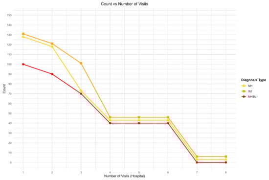 - at least one mental health (MH) diagnosis (defined by at least times hospitalizations or primary care physician visits within time span),