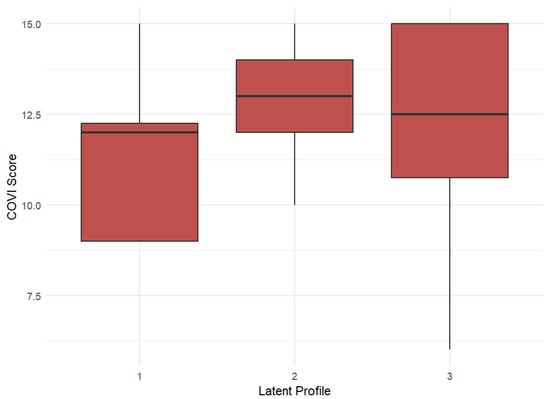 Distribution of COVI scores by latent profile (median and interquartile ranges shown).
