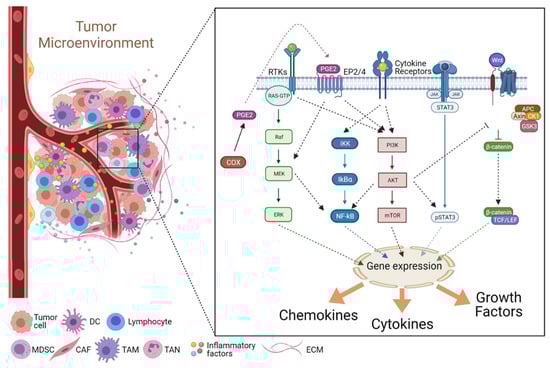 Pereira, J.F.S.; Jordan, P.; Matos, P. A Signaling View into the Inflammatory Tumor Microenvironment. Immuno 2021, 1, 91-118. https://doi.org/10.3390/immuno1020007