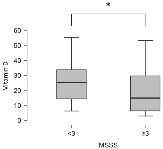- Moosavi, E.; Rafiei, A.; Yazdani, Y.; Eslami, M.; Saeedi, M. Association of serum levels and receptor genes BsmI, TaqI and FokI polymorphisms of vitamin D with the severity of multiple sclerosis. J. Clin. Neurosci. 2021, 84, 75–81. [Google Scholar] [CrossRef]